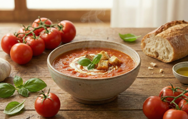 잘 익은 토마토와 직접 만든 육수가 만나 깔끔하고 상큼한 맛을 냅니다. 입맛을 돋우는 데 최고이며 샌드위치와 환상 궁합입니다.